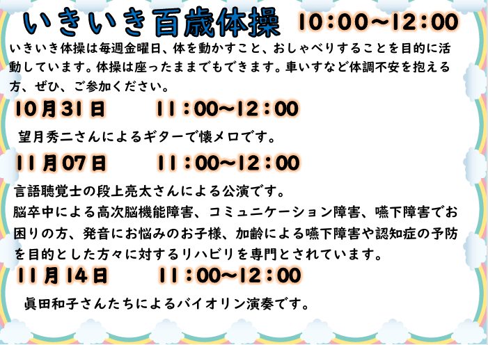 トピックス いきいき百歳体操からのお知らせ(2025.10.27更新)